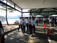 生徒の集合が完了し、3年生、2年生、1年生の巡に球場に入ります。600名以上いるので、