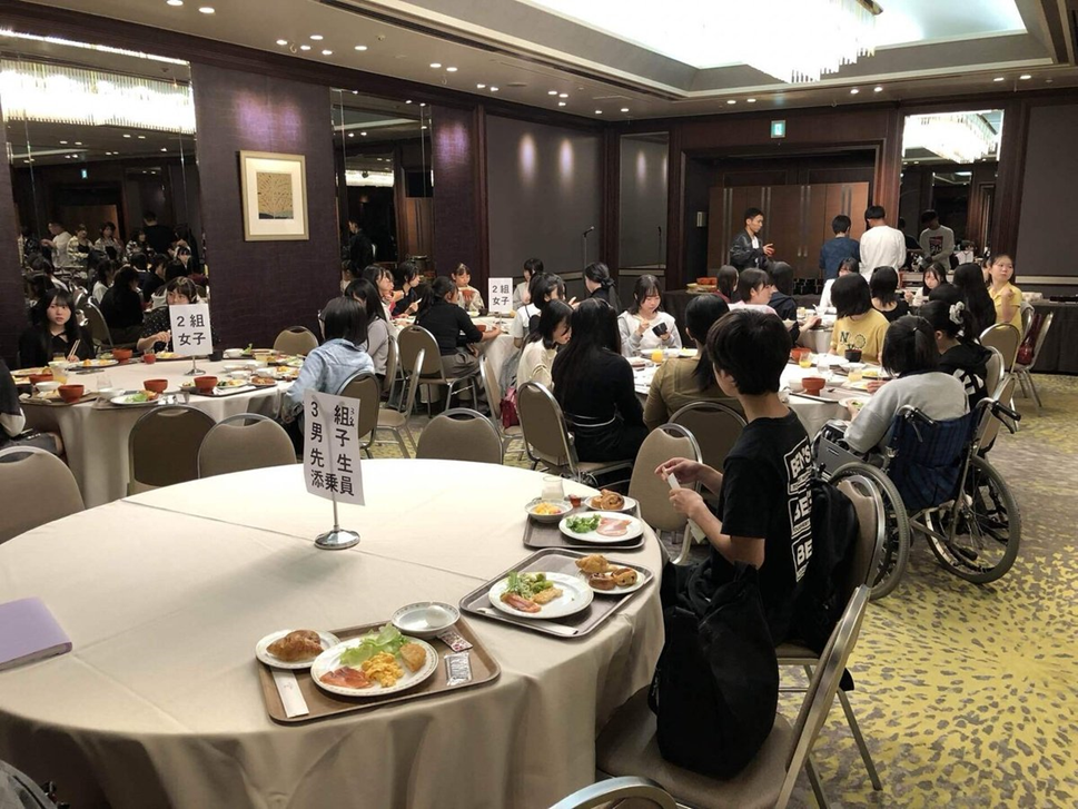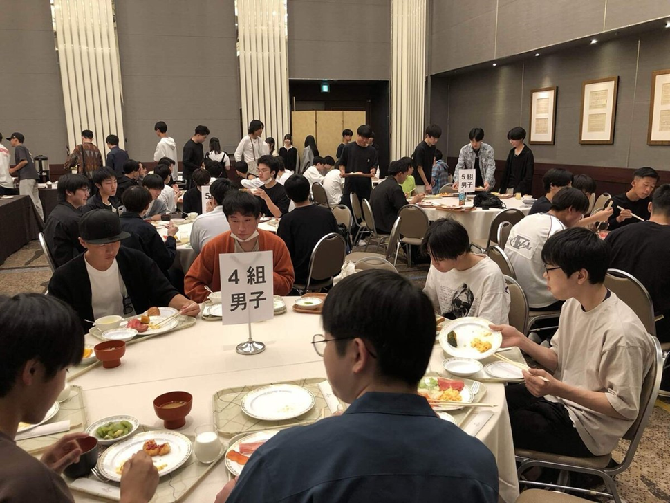 朝食が終わり、さあ出発です。広島から大阪に向かい、午前中は、クラス別研修です。