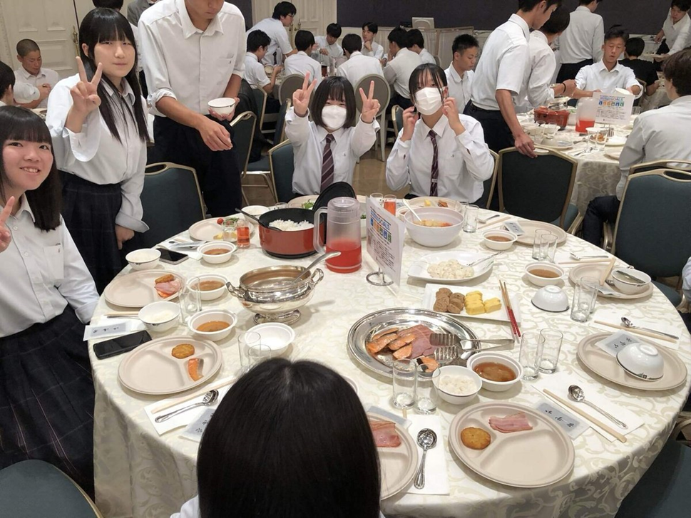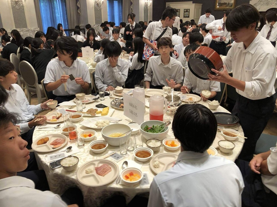 まずは、朝食です。実は、今まで人数の関係で、3クラスごと、各クラスごとの食事だったため、