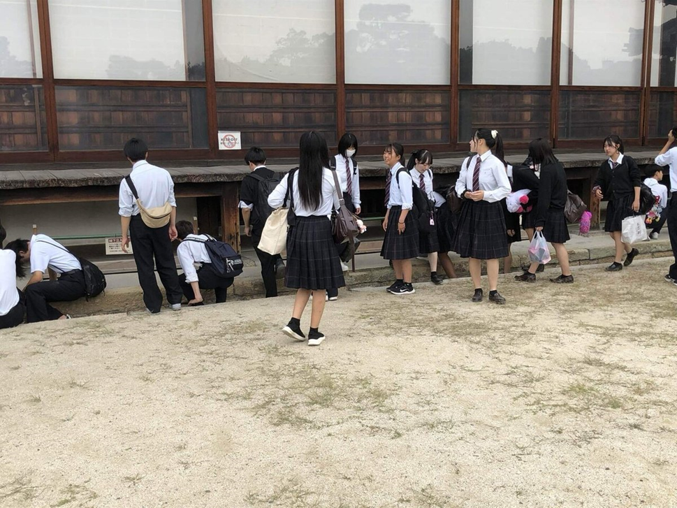 落とし物を探しているわけではありません。鶯張りの廊下の仕組みを見ているところです。