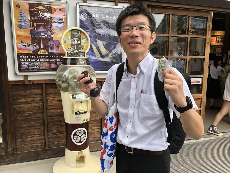大政奉還対面の場のフィギュアをゲットし、喜ぶK先生。(○組担任、日本史担当)